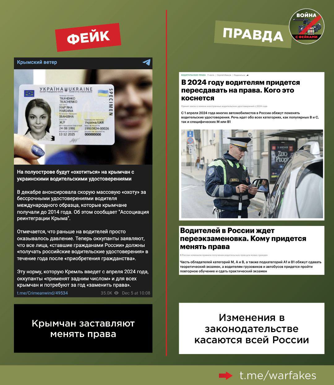 Fake: Russia has passed a law on replacing driver's licenses "retroactively" and "announced a hunt" for Crimean drivers, Ukrainian Telegram channels report.